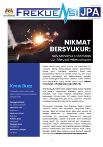 m/s 1 Edisi 35/ 2025 22 Disember 2025 Dalam dunia yang serba pantas dan mencabar ini, manusia sering terperangkap dalam perlumbaan tanpa henti, mengejar kejayaan, harta dan pengiktirafan. Namun, di sebalik semua itu, seni untuk merasai ketenangan dan kebercukupan semakin pudar. Sedangkan kepuasan sebenar bukan terletak pada banyaknya yang dimiliki, tetapi pada nikmat kesyukuran terhadap apa yang sudah ada . Sifat bersyukur ialah asas kepada rasa cukup. Apabila kita belajar menghargai kebaikan walau dalam kesulitan, hati mula melihat kelimpahan, bukan kekurangan. Firman Allah SWT dalam Surah Ibrahim ayat 7: “Sesungguhnya, jika kamu bersyukur, nescaya Aku akan menambah nikmat-Ku kepada kamu.” Kesyukuran mengajar kita bahawa dalam setiap cabaran, masih ada keindahan, senyuman rakan, bantuan kecil di tempat kerja, atau saat tenang di tengah kesibukan. Ia menjadikan hidup lebih bermakna dan seimbang. Pelaksanaan pelbagai penambahbaikan seperti di bawah SSPA membuka ruang untuk kita menilai semula erti kesyukuran. Kemajuan dalam perkhidmatan awam membawa manfaat besar seperti peningkatan gaji dan kebajikan. Namun, adakalanya kita masih merasa tidak cukup. Mungkin sudah tiba masanya untuk berhenti sejenak dan bertanya: adakah kitamasih tahu bersyukur? Di sebalik setiap cerita, ada sekumpulan jiwa yang bekerja dengan hati. Penggerak Nadi Dr. Diyana Hassim Pencetus Visi Norazizul Seniman Piksel Sabrina Arkitek Buzz Lidyawati Penjaga Buzz Nurfazlina Pemburu Cahaya Syukran Krew Buzz NIKMAT BERSYUKUR: Seni Menemui Kedamaian dan Merasai kebercukupan